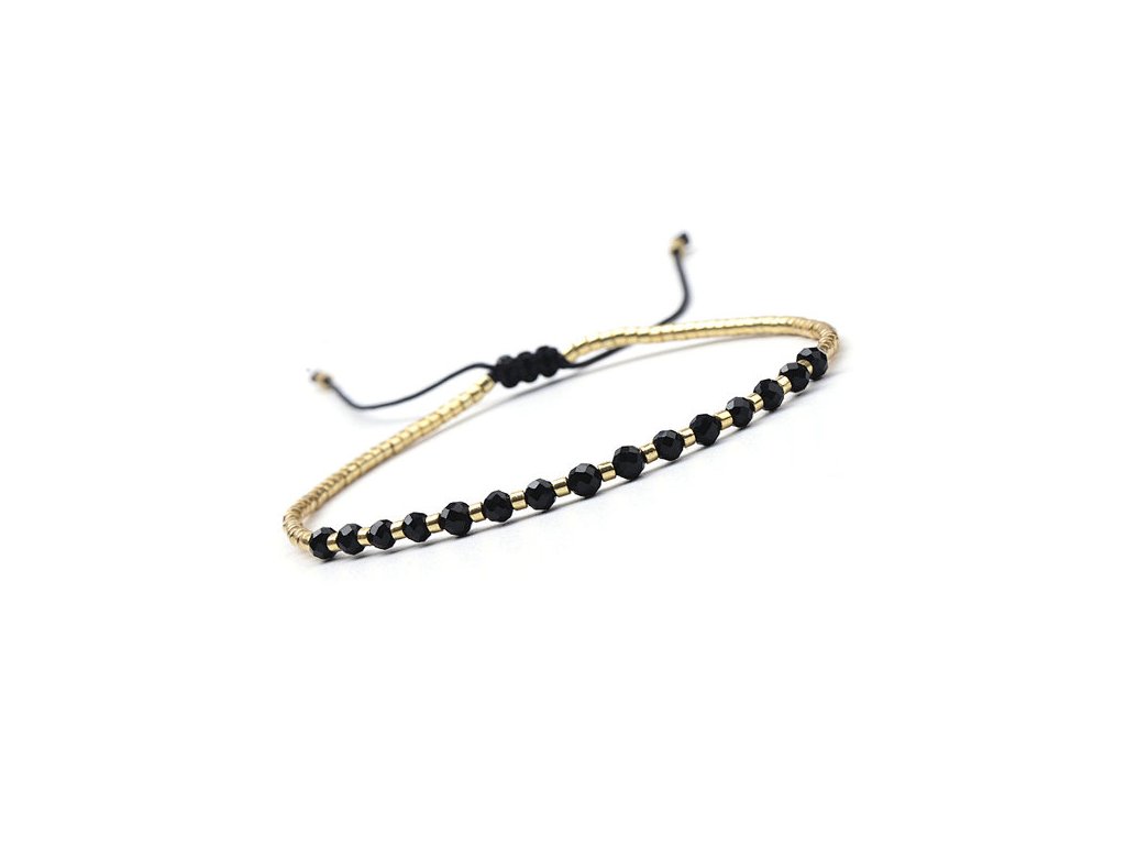Tento jemný, ale výrazný náramek propojuje luxusní černý spinel s precizně zpracovanými Miyuki korálky. Elegantní kontrast černé a zlaté vytváří šperk, který se hodí jak k ležérnímu stylu, tak k formálnějším příležitostem.