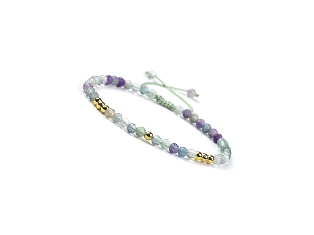 Elegantní náramek z přírodního duhového fluoritu a mosazných korálků. Podporuje jasnou mysl, rovnováhu a ochranu před negativní energií.