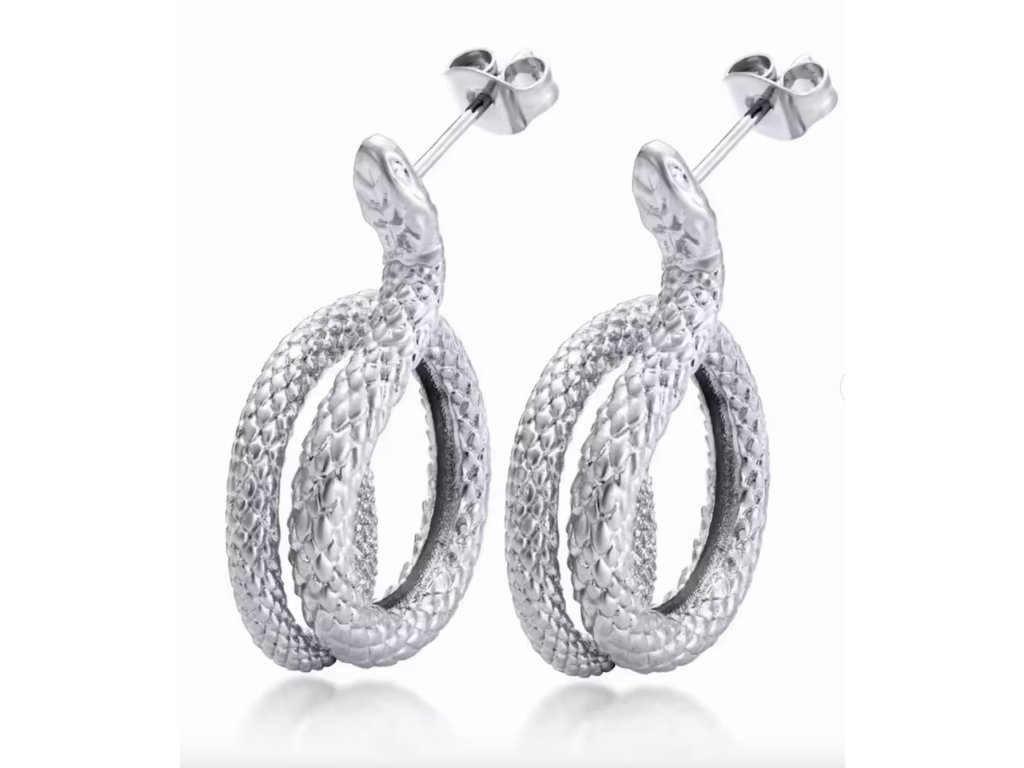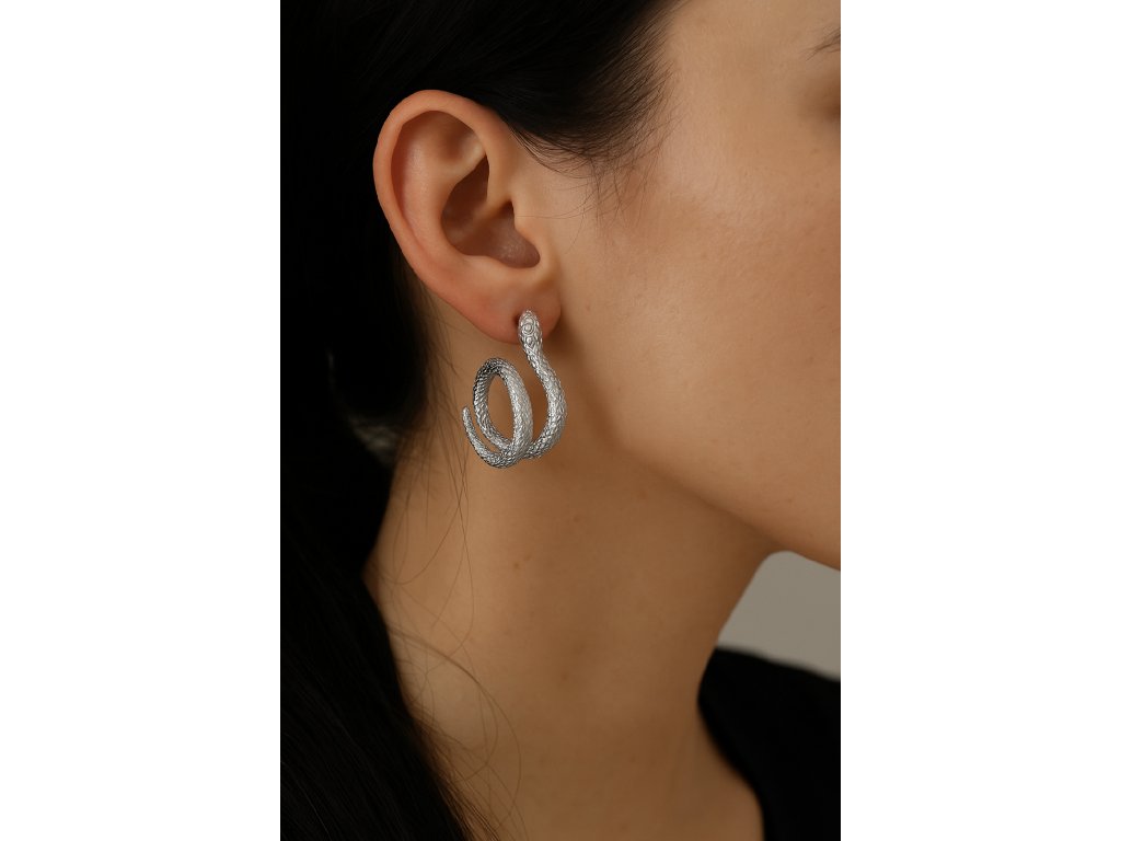 Vystup z davu s těmito jedinečnými dámskými náušnicemi ve tvaru hada, vyrobenými z prvotřídní chirurgické oceli. Precizně propracovaná šupinatá textura a elegantně zakroucený tvar dodávají šperku luxusní vzhled, který okamžitě zaujme.