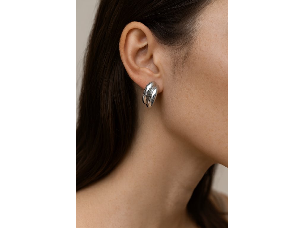 Elegantní náušnice Nina z chirurgické oceli v moderním dvojitě klenutém designu. Nadčasový kousek, který se hodí jak k běžnému nošení, tak i k elegantním outfitům.