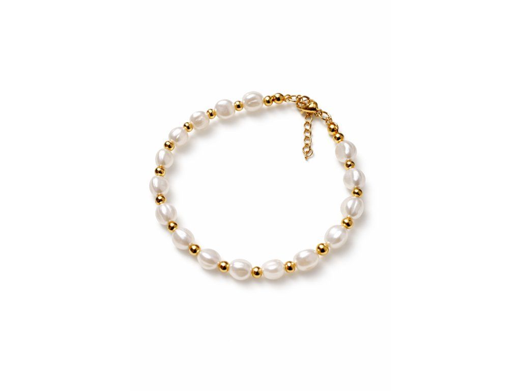 Elegantní perlový náramek, který spojuje nadčasovou krásu perel s moderní odolností chirurgické oceli. Nepravidelné perly dodávají šperku přirozenost a autenticitu, zlaté ocelové komponenty podtrhují jeho jemný, ale luxusní charakter.