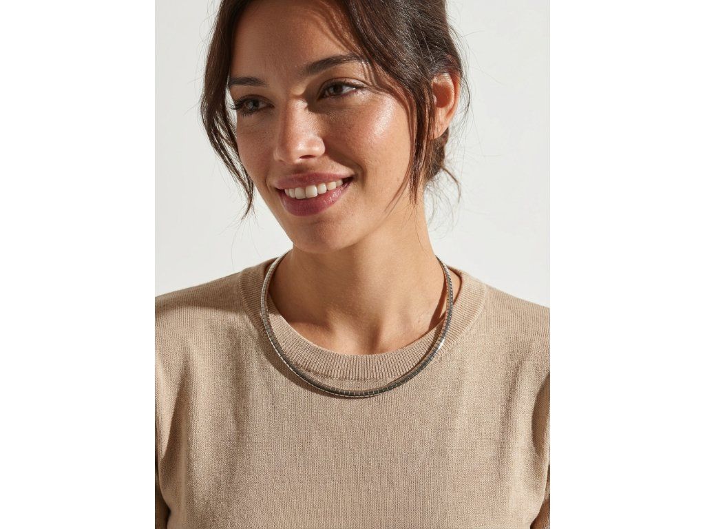 Díky pevné konstrukci krásně obepíná linii krku a vytváří sofistikovaný, uhlazený vzhled. Ideální pro ženy, které milují jednoduché, ale silné šperky.
