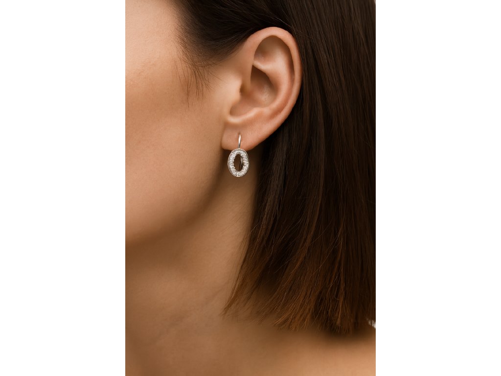 Stylové stříbrné náušnice s originálním oválným tvarem a třpytivými čirými zirkony působí jemně, ale zároveň výrazně. Jejich precizní provedení a lesklý povrch z kvalitního stříbra 925/1000 dodává šperku luxusní vzhled, který krásně doplní každodenní outfit i slavnostní šaty. Zapínání na dámský patent zajistí pohodlné a bezpečné nošení. Tyto náušnice jsou ideální volbou pro ženy, které hledají decentní, ale nepřehlédnutelný šperk.